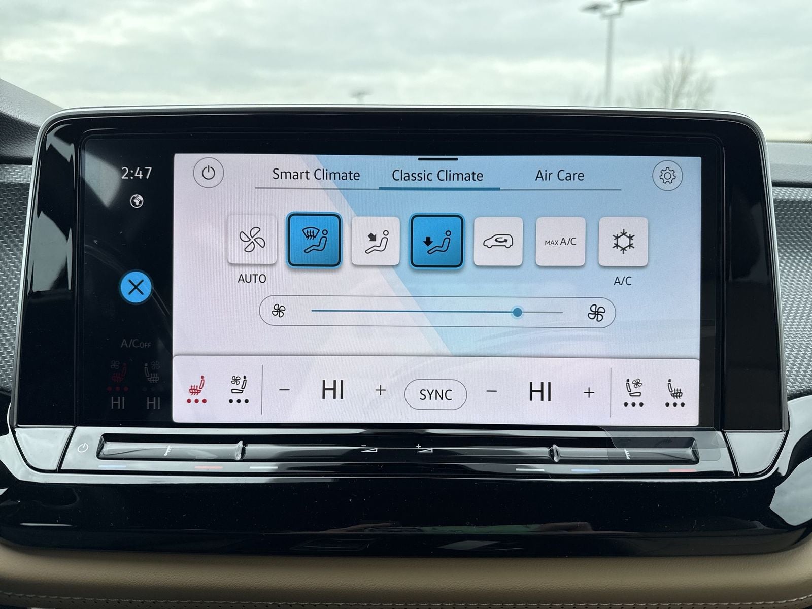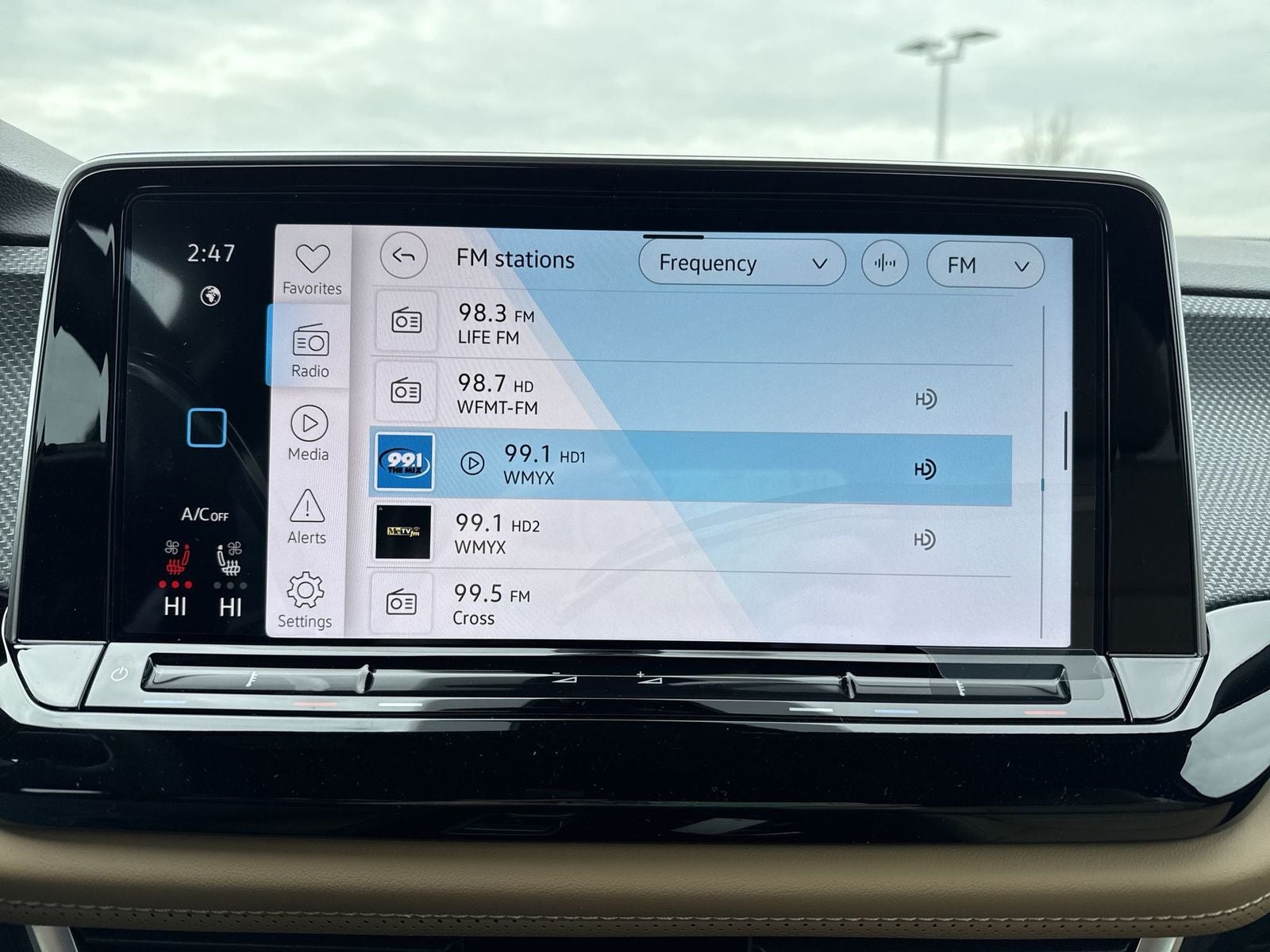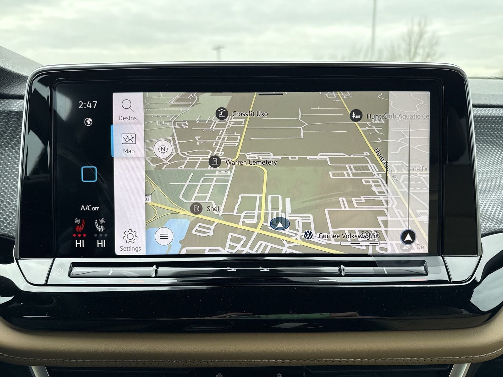 With options like 33-Month SiriusXM Service Extension Subscription, 4-Wheel Disc Brakes, 4-Wheel Independent Suspension, 6 Speakers, ABS brakes, Air Conditioning, Alloy wheels, AM/FM radio: SiriusXM with 360L, Auto High-beam Headlights, Auto-dimming Rear-View mirror, Automatic temperature control, Brake assist, Bumpers: body-color, Compass, Delay-off headlights, Driver door bin, Driver vanity mirror, Dual front impact airbags, Dual front side impact airbags, Dynamic Wheel Center Caps (set of 4), Electronic Stability Control, Emergency communication system: VW Car-Net Safe & Secure 5-year, Extended Range Remote Key Fob (1) Upgrade, Exterior Parking Camera Rear, Four wheel independent suspension, Front anti-roll bar, Front Bucket Seats, Front Center Armrest, Front dual zone A/C, Front fog lights, Front reading lights, Front-Door Mounted Volkswagen Logo Puddle Lights (set of 2), Fully automatic headlights, Garage door transmitter: HomeLink, Heads-Up Display, Heated and Actively Ventilated Front Bucket Seats, Heated door mirrors, Heated front seats, Heated rear seats, Heated steering wheel, Heavy Duty Trunk Liner with VW CarGo Blocks, Illuminated entry, Low tire pressure warning, Memory seat, Occupant sensing airbag, Outside temperature display, Overhead airbag, Overhead console, Panic alarm, Passed Multipoint inspection, Passenger door bin, Passenger vanity mirror, Perforated Vienna Leather Seating Surfaces, Power door mirrors, Power driver seat, Power Liftgate, Power moonroof: Panoramic, Power passenger seat, Power steering, Power windows, Radio data system, Radio: MIB3 Discover Pro with Navigation, Rain sensing wipers, Rear anti-roll bar, Rear reading lights, Rear seat center armrest, Rear window defroster, Rear window wiper, Remote keyless entry, Retractable Privacy Cover For Cargo Area, Rubber Monster Mats Kit (set of 4), Security system, Speed control, Speed-sensing steering, Split folding rear seat, Spoiler, Steering wheel mounted audio controls, Tachometer, Telescoping steering wheel, Tilt steering wheel, Traction control, Trip computer, Turn signal indicator mirrors, Variably intermittent wipers, Ventilated front seats, VW Care, Wheel Splash Guards (set of 4), and Wheels: 20 Black Painted Alloy.
