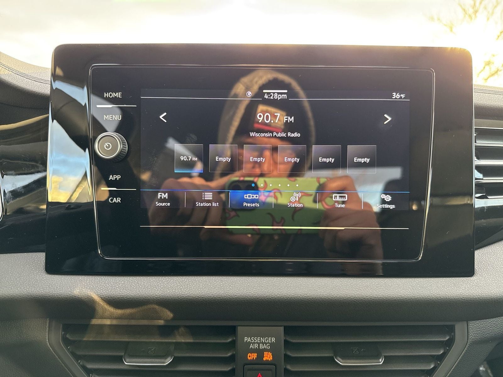 With options like 4 Speakers, 4-Wheel Disc Brakes, ABS brakes, Active Blind Spot Monitor, Air Conditioning, Alloy wheels, Auto-dimming Rear-View mirror, Auto-Dimming Rearview Mirror with HomeLink, Automatic temperature control, Black Trunk Lid Lip Spoiler, Brake assist, Bumpers: body-color, Cloth Seat Trim, Delay-off headlights, Driver door bin, Driver vanity mirror, Dual front impact airbags, Dual front side impact airbags, Dynamic Wheel Center Caps (set of 4), Electronic Stability Control, Emergency communication system: VW Car-Net Safe & Secure 5-year, Extended Range Remote Engine Start, Exterior Parking Camera Rear, Front anti-roll bar, Front Bucket Seats, Front Center Armrest, Front Center Armrest Storage Organizing Trays, Front dual zone A/C, Front Seats, Front wheel independent suspension, Fully automatic headlights, Heated door mirrors, Illuminated entry, Leather Shift Knob, Leather steering wheel, Low tire pressure warning, Occupant sensing airbag, Outside temperature display, Overhead airbag, Overhead console, Panic alarm, Passenger door bin, Passenger vanity mirror, Power door mirrors, Power steering, Power windows, Radio data system, Radio: MIB3 Composition Color with 8 Touchscreen, Rain sensing wipers, Rear anti-roll bar, Rear reading lights, Rear window defroster, Remote keyless entry, Speed control, Speed-sensing steering, Split folding rear seat, Steering wheel mounted audio controls, Tachometer, Telescoping steering wheel, Tilt steering wheel, Traction control, Trip computer, Variably intermittent wipers, VW Care, and Wheels: 16 2-Tone Machined Alloy.