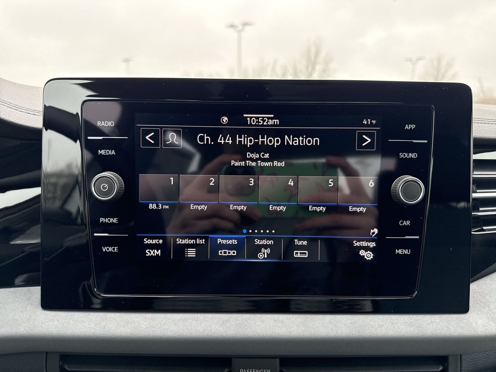 - Radio: MIB3 Composition Media w/8" Touchscreen -inc: AM/FM/HD Radio and WMA/MP3/FLAC player w/USB-C, voice control, 6-speaker sound system, Bluetooth® connectivity (for compatible devices), SiriusXM w/360L (w/3-month trial subscription; 360L services require acceptance of Car-Net terms), capability for in-vehicle 4G LTE enabled Wi-Fi (cellular data plan required; includes limited trial), capability for connected vehicle services (capabilities for certain services vary; requires enrollment or subscription), App-Connect smartphone integration (w/Apple CarPlay, Android Auto and MirrorLink) via USB, wireless App-Connect smartphone integration (for compatible devices) w/multi-phone pairing capability, USB-C enhanced charging, up to 45W (for compatible devices) and Qi wireless inductive charger (for compatible mobile phones and accessories) All connected vehicle services are subject to terms and limitations. Some services require a paid subscription. See dealer or vw.com/connected for important details.