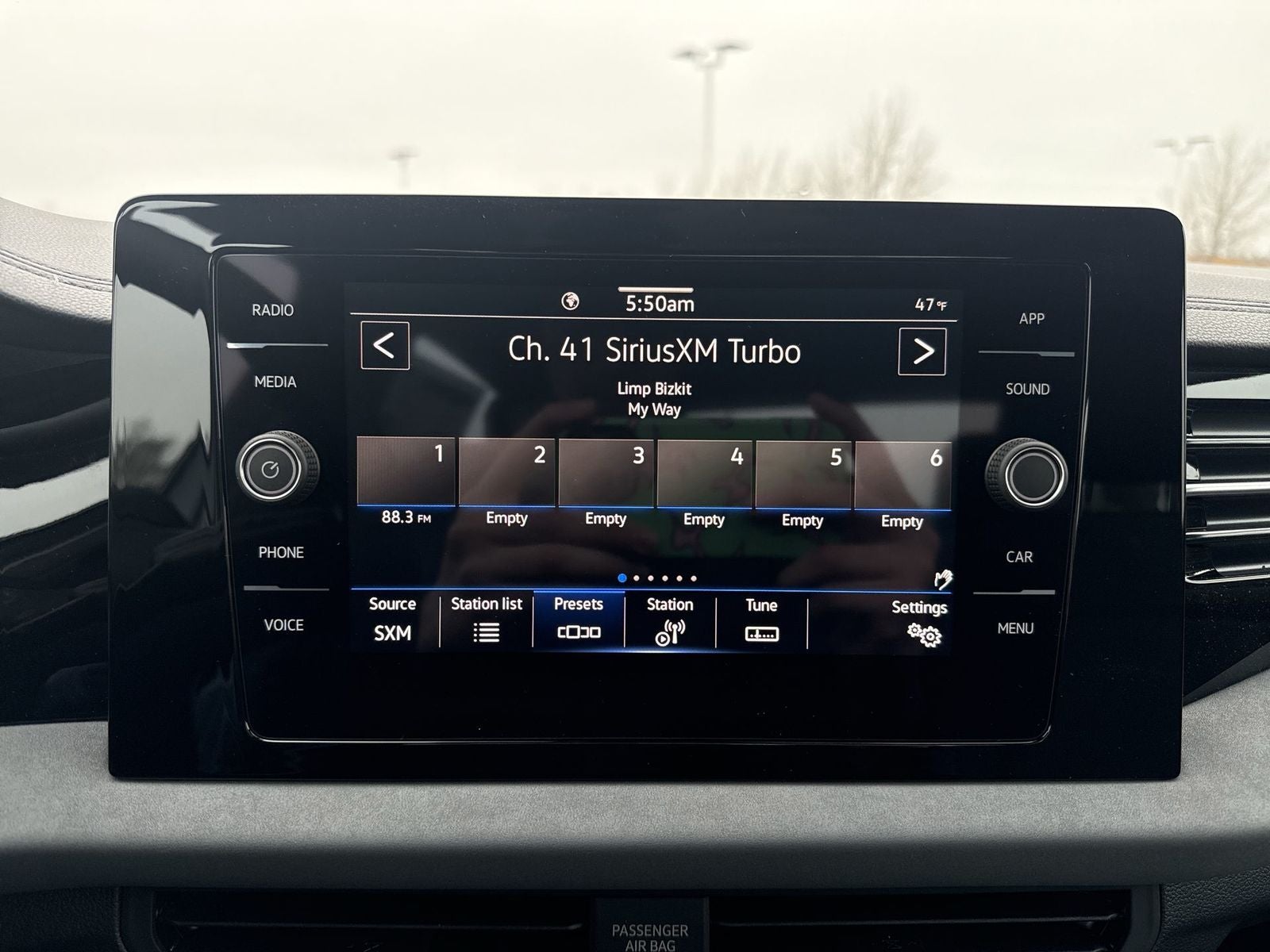 - Radio: MIB3 Composition Media w/8" Touchscreen -inc: AM/FM/HD Radio and WMA/MP3/FLAC player w/USB-C, voice control, 6-speaker sound system, Bluetooth® connectivity (for compatible devices), SiriusXM w/360L (w/3-month trial subscription; 360L services require acceptance of Car-Net terms), capability for in-vehicle 4G LTE enabled Wi-Fi (cellular data plan required; includes limited trial), capability for connected vehicle services (capabilities for certain services vary; requires enrollment or subscription), App-Connect smartphone integration (w/Apple CarPlay, Android Auto and MirrorLink) via USB, wireless App-Connect smartphone integration (for compatible devices) w/multi-phone pairing capability, USB-C enhanced charging, up to 45W (for compatible devices) and Qi wireless inductive charger (for compatible mobile phones and accessories) All connected vehicle services are subject to terms and limitations. Some services require a paid subscription. See dealer or vw.com/connected for important details.