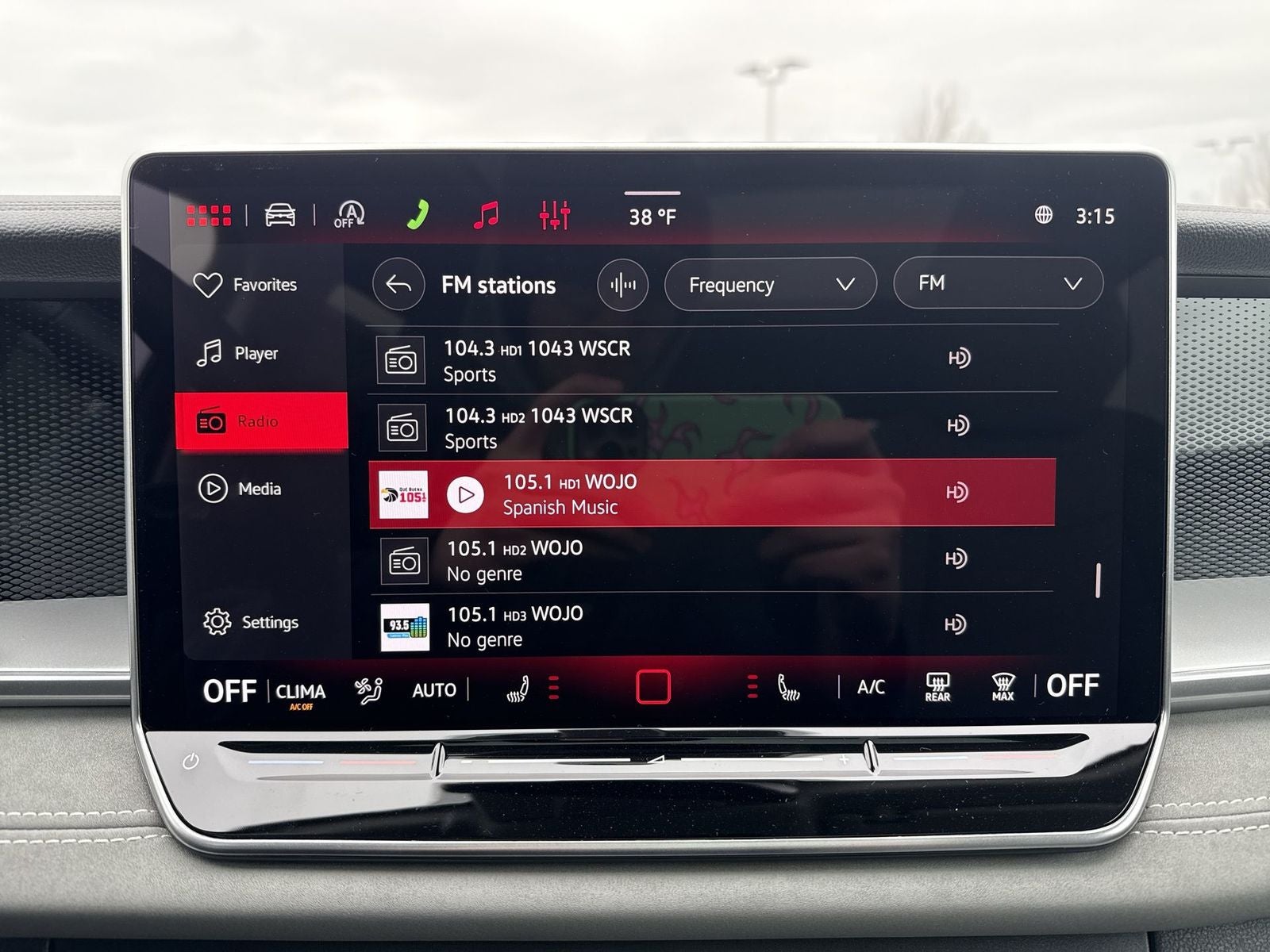 - MIB4 Composition Media Touchscreen w/AM/FM Radio -inc: WMA/MP3/FLAC player w/USB, 12.9" touchscreen multi-function center display w/backlit sliders, voice control, 6 speakers + center speaker (7 speakers total) sound system, capability for in-vehicle 4G LTE enabled Wi-Fi (cellular data plan required; includes limited trial), capability for connected vehicle services (capabilities for services vary; requires enrollment or subscription), Bluetooth® connectivity (for compatible devices), SiriusXM w/360L (w/3-month free trial subscription; 360L services require acceptance of Car-Net terms), App-Connect smartphone integration (w/Apple CarPlay, Android Auto and MirrorLink) via USB, wireless App-Connect smartphone integration (for compatible devices) w/multi-phone pairing capability, 45W fast charging (for compatible mobile phones and accessories) via USB in both rows and Qi wireless inductive charger, cooled, up to 15W (for compatible mobile phones and accessories) All connected vehicle services are subject to terms and limitations. Some services require a paid subscription. See dealer or vw.com/connected for important details.
