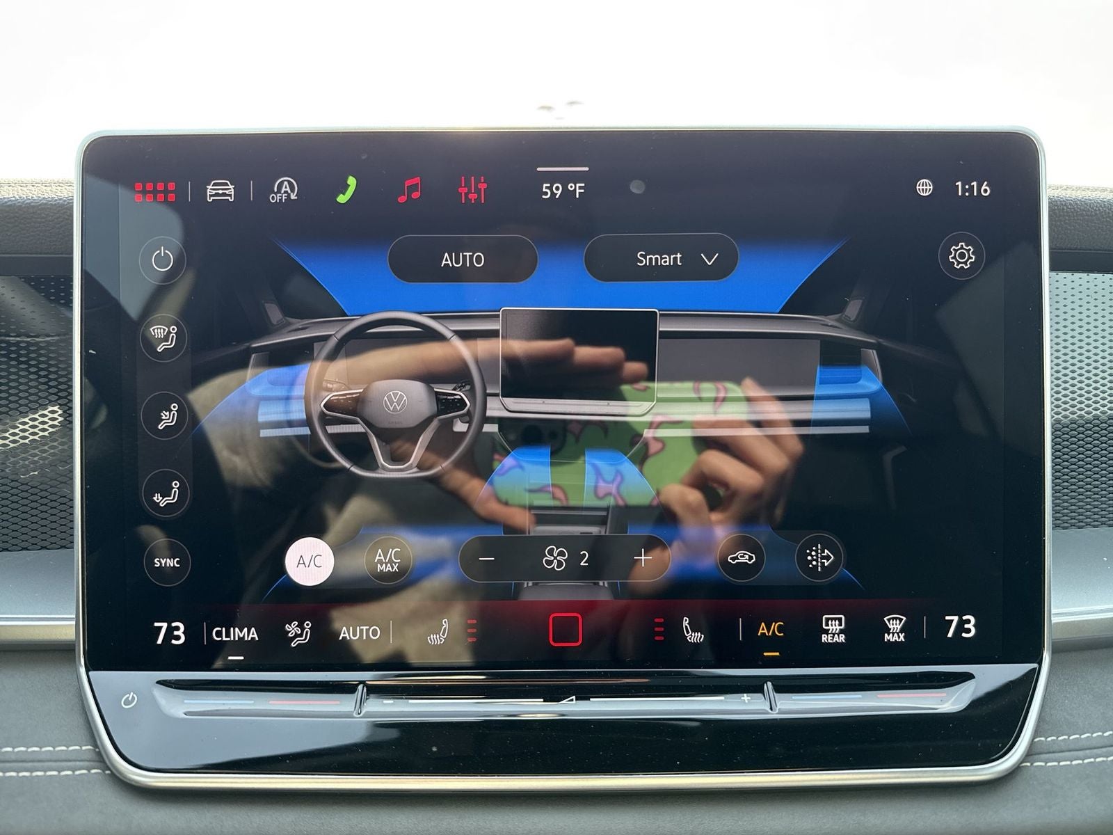 - MIB4 Composition Media Touchscreen w/AM/FM Radio -inc: WMA/MP3/FLAC player w/USB, 12.9" touchscreen multi-function center display w/backlit sliders, voice control, 6 speakers + center speaker (7 speakers total) sound system, capability for in-vehicle 4G LTE enabled Wi-Fi (cellular data plan required; includes limited trial), capability for connected vehicle services (capabilities for services vary; requires enrollment or subscription), Bluetooth® connectivity (for compatible devices), SiriusXM w/360L (w/3-month free trial subscription; 360L services require acceptance of Car-Net terms), App-Connect smartphone integration (w/Apple CarPlay, Android Auto and MirrorLink) via USB, wireless App-Connect smartphone integration (for compatible devices) w/multi-phone pairing capability, 45W fast charging (for compatible mobile phones and accessories) via USB in both rows and Qi wireless inductive charger, cooled, up to 15W (for compatible mobile phones and accessories) All connected vehicle services are subject to terms and limitations. Some services require a paid subscription. See dealer or vw.com/connected for important details.