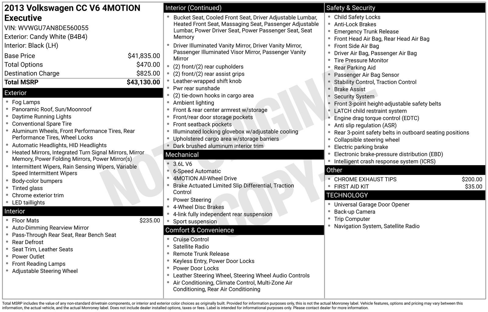 With options like 10 Speakers, 18 Polished Interlagos Alloy Wheels, 4-Wheel Disc Brakes, ABS brakes, Air Conditioning, Alloy wheels, AM/FM radio: SiriusXM, Anti-whiplash front head restraints, Auto-dimming door mirrors, Auto-dimming Rear-View mirror, Automatic temperature control, Bodyside moldings, Brake assist, Bumpers: body-color, CD player, Chrome Exhaust Tips, Compass, Delay-off headlights, Driver door bin, Driver vanity mirror, Dual front impact airbags, Dual front side impact airbags, DVD-Audio, Electronic Stability Control, First Aid Kit, Four wheel independent suspension, Front anti-roll bar, Front Bucket Seats, Front Center Armrest, Front dual zone A/C, Front fog lights, Front reading lights, Genuine wood dashboard insert, Genuine wood door panel insert, Headlight cleaning, Heated door mirrors, Heated front seats, Heated/Active Ventilated Front Sport Bucket Seats, High intensity discharge headlights: Bi-Xenon, Illuminated entry, Leather Seating Surfaces, Leather Shift Knob, Leather steering wheel, Low tire pressure warning, Mat Kit, Memory seat, Occupant sensing airbag, Outside temperature display, Overhead airbag, Overhead console, Panic alarm, Passed Multipoint inspection, Passenger door bin, Passenger vanity mirror, Power door mirrors, Power driver seat, Power moonroof, Power passenger seat, Power steering, Power windows, Radio data system, Radio: Prem. VIII Touchscreen w/RNS 510 Nav System, Rain sensing wipers, Rear anti-roll bar, Rear reading lights, Rear seat center armrest, Rear Window Blind, Rear window defroster, Remote keyless entry, Security system, Speed control, Speed-sensing steering, Split folding rear seat, Steering wheel mounted audio controls, Tachometer, Telescoping steering wheel, Tilt steering wheel, Traction control, Trip computer, Turn signal indicator mirrors, Variably intermittent wipers, and Ventilated front seats.