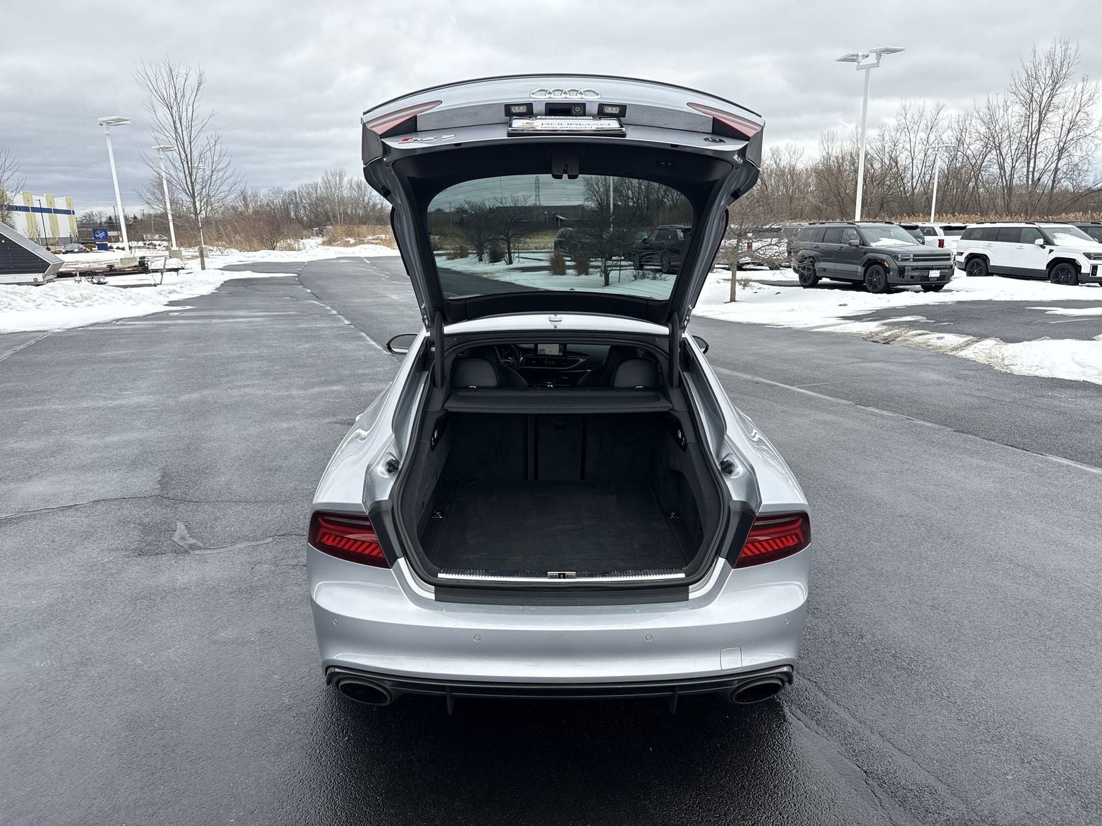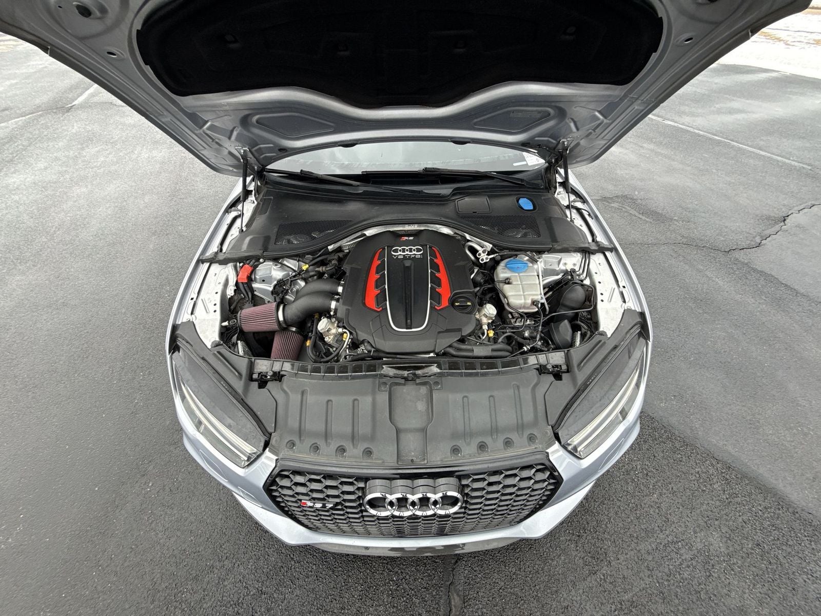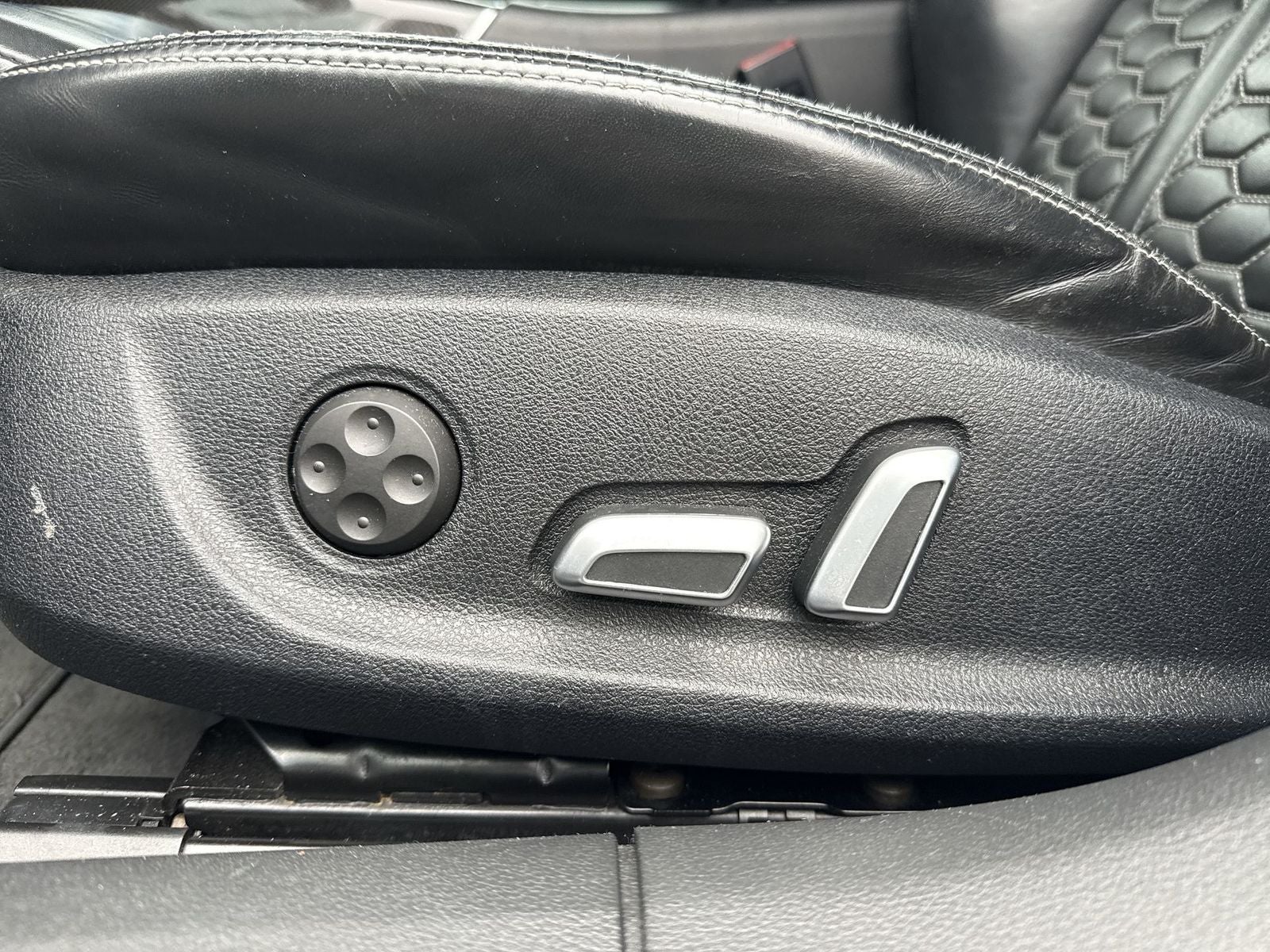 With options like 14 Speakers, 4-Wheel Disc Brakes, ABS brakes, Adaptive suspension, Air Conditioning, Alloy wheels, AM/FM radio: SiriusXM, Anti-whiplash front head restraints, Audi Smartphone Interface, Auto tilt-away steering wheel, Auto-dimming door mirrors, Auto-dimming Rear-View mirror, Auto-leveling suspension, Automatic temperature control, BOSE Surround Sound System, Brake assist, Bumpers: body-color, CD player, Compass, Delay-off headlights, Door auto-latch, Driver door bin, Driver vanity mirror, Dual front impact airbags, Dual front side impact airbags, DVD-Audio, Electronic Stability Control, Exterior Parking Camera Rear, Four wheel independent suspension, Front anti-roll bar, Front Bucket Seats, Front Center Armrest w/Storage, Front dual zone A/C, Front fog lights, Front reading lights, Garage door transmitter: HomeLink, Heads-Up Display, Heated door mirrors, Heated front seats, Heated RS Sport Bucket Seats, Illuminated entry, Knee airbag, Leather Shift Knob, Leather steering wheel, Low tire pressure warning, Memory seat, Occupant sensing airbag, Outside temperature display, Overhead airbag, Overhead console, Panic alarm, Passed Multipoint inspection, Passenger door bin, Passenger vanity mirror, Power door mirrors, Power driver seat, Power Liftgate, Power moonroof, Power passenger seat, Power steering, Power windows, Radio data system, Radio: Audi MMI Navigation Plus w/AM/FM, Rain sensing wipers, Rear air conditioning, Rear anti-roll bar, Rear dual zone A/C, Rear fog lights, Rear reading lights, Rear seat center armrest, Rear window defroster, Remote keyless entry, Security system, Speed control, Speed-sensing steering, Speed-Sensitive Wipers, Spoiler, Sport steering wheel, Steering wheel memory, Steering wheel mounted audio controls, Tachometer, Telescoping steering wheel, Tilt steering wheel, Traction control, Trip computer, Turn signal indicator mirrors, Valcona Leather Seating Surfaces, Variably intermittent wipers, and Wheels: 9.0 x 20 Forged 7-Twin Spoke.