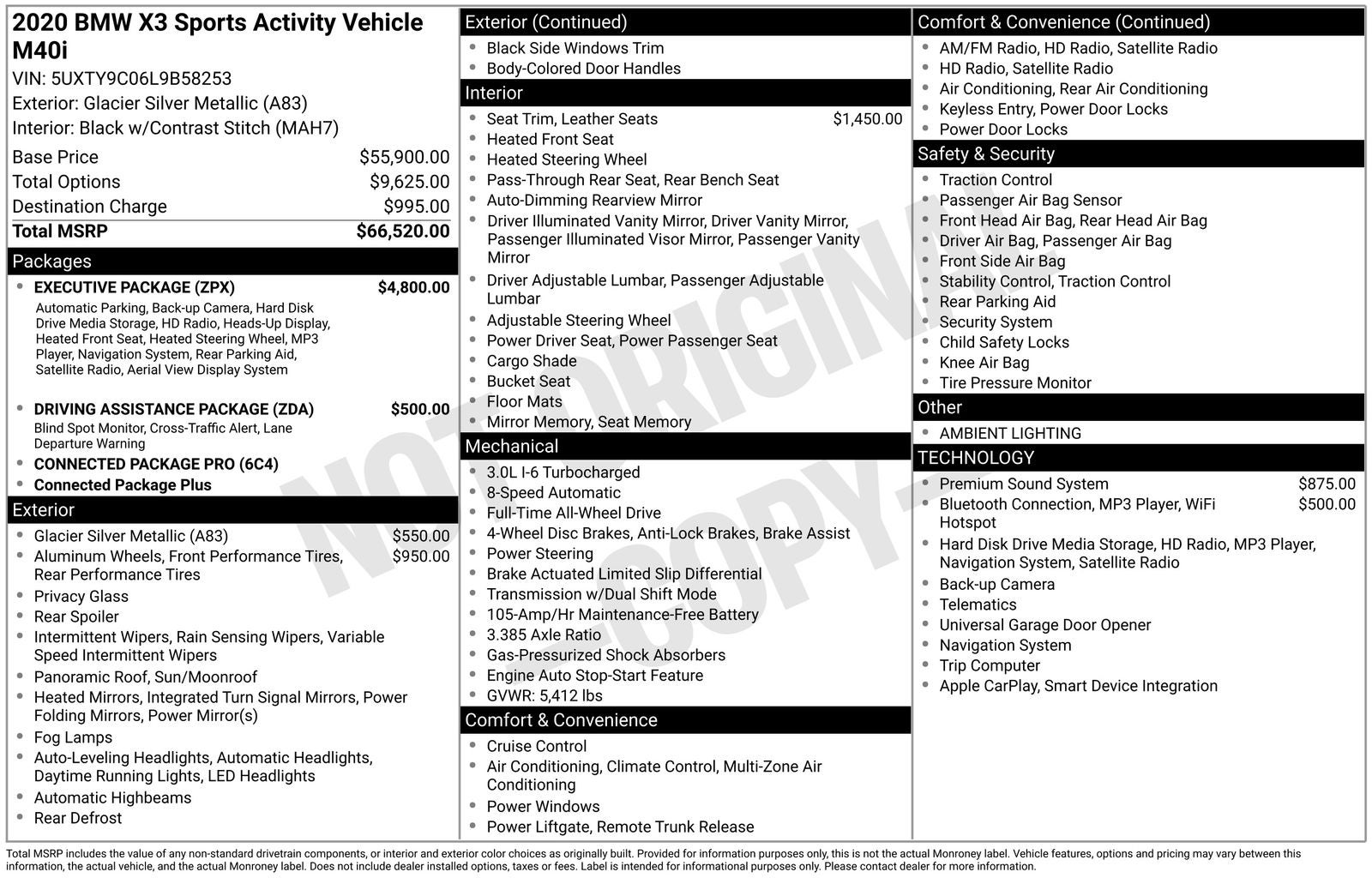With options like Connected Package Plus, Connected Package Pro, Driving Assistance Package (Active Blind Spot Detection, Active Driving Assistant, and Lane Departure Warning System), Executive Package (Active Park Distance Control, Ambient Lighting, Gesture Control, Head-Up Display, Heated Front Seats, Heated Steering Wheel, Live Cockpit Pro w/Navigation, Parking Assistant Plus, Rear-View Camera, Surround View w/3D View, and Vernasca Leather Upholstery), Wireless Charging (Enhanced USB & Bluetooth® and WiFi Hotspot), 12 Speakers, 3.385 Axle Ratio, 4-Wheel Disc Brakes, ABS brakes, Air Conditioning, Alloy wheels, AM/FM radio: SiriusXM, Apple CarPlay Compatibility, Apple CarPlay Compatibility with 1-year trial, Auto High-beam Headlights, Auto-dimming door mirrors, Auto-dimming Rear-View mirror, Automatic temperature control, BMW Assist eCall, BMW TeleServices, Brake assist, Bumpers: body-color, ConnectedDrive Services, Delay-off headlights, Driver door bin, Driver vanity mirror, Dual front impact airbags, Dual front side impact airbags, DVD Area Coding (North America), Electronic Stability Control, Emergency communication system: BMW Assist eCall, Exterior Parking Camera Rear, Four wheel independent suspension, Front anti-roll bar, Front Bucket Seats, Front Center Armrest, Front dual zone A/C, Front fog lights, Front reading lights, Fully automatic headlights, Garage door transmitter, Hands-Free Bluetooth® & USB Audio Connection, harman/kardon Surround Sound System, Heated door mirrors, Hi-Fi Sound System, Illuminated entry, Increased Top Speed Limiter, Knee airbag, Low tire pressure warning, Lumbar Support, Memory seat, Navigation, Occupant sensing airbag, Outside temperature display, Overhead airbag, Panic alarm, Passed Multipoint inspection, Passenger door bin, Passenger vanity mirror, Power door mirrors, Power driver seat, Power Front Seats, Power Liftgate, Power moonroof, Power passenger seat, Power steering, Power windows, Radio Control US, Radio data system, Radio: AM/FM Stereo w/HD, Rain sensing wipers, Rear air conditioning, Rear anti-roll bar, Rear reading lights, Rear seat center armrest, Rear window defroster, Rear window wiper, Remote keyless entry, Roof rack: rails only, Security system, SensaTec Upholstery, SiriusXM Satellite Radio, Speed control, Speed-sensing steering, Speed-Sensitive Wipers, Split folding rear seat, Spoiler, Sport Bucket Seats, Sport steering wheel, Steering wheel mounted audio controls, Tachometer, Telescoping steering wheel, Tilt steering wheel, Traction control, Trip computer, Turn signal indicator mirrors, Variably intermittent wipers, Wheels: 19 x 7.5 M Double-Spoke (Style 698M), and Wheels: 20 x 8.0 Fr/20 x 9.5 Rr (Style 699M)
