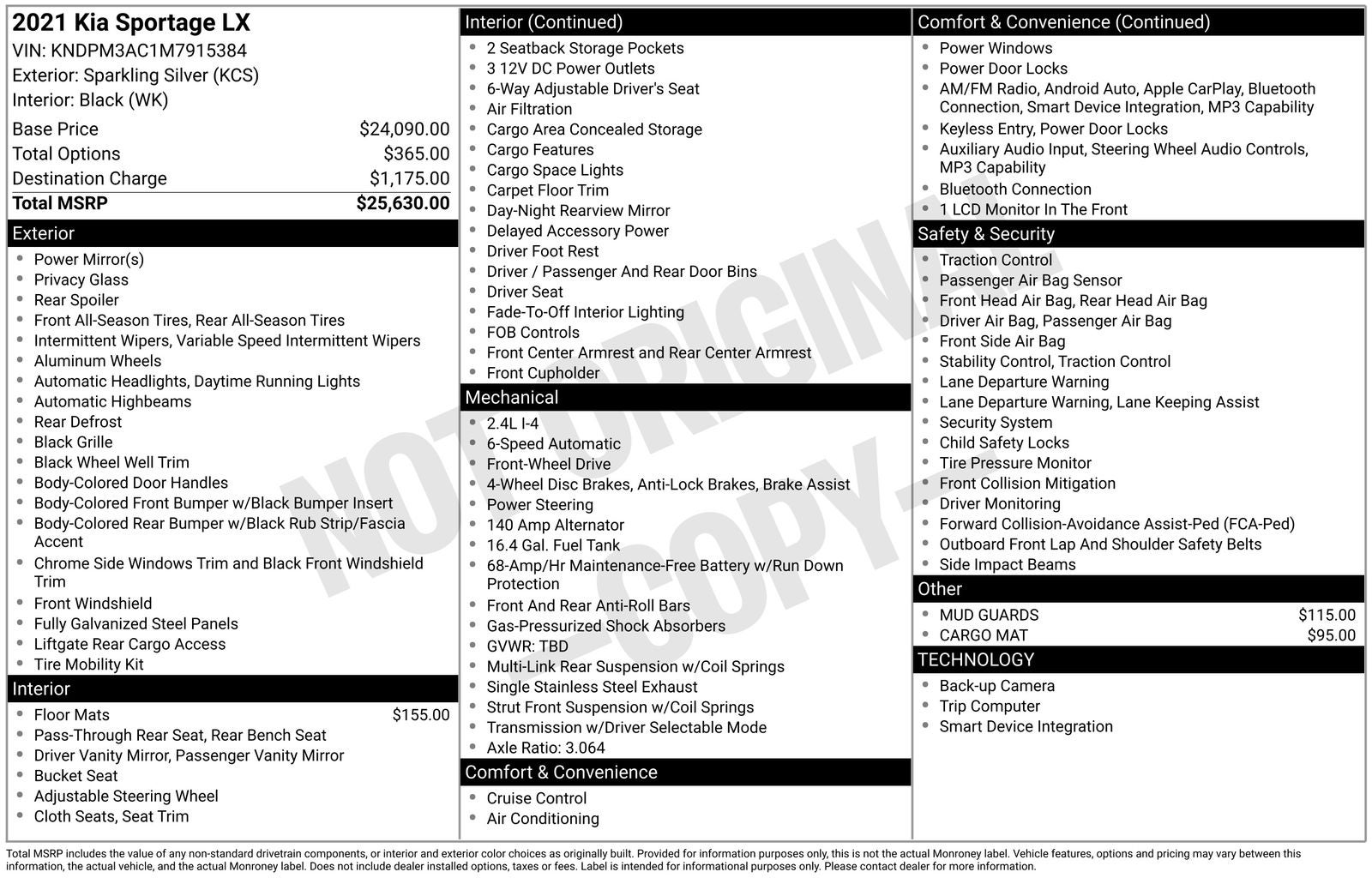 With options like 17 Machine-Finished Alloy Wheels, 4-Wheel Disc Brakes, 6 Speakers, 6-Way Adjustable Driver's Seat, ABS brakes, Air Conditioning, Alloy wheels, AM/FM radio, Apple CarPlay & Android Auto, Auto High-beam Headlights, Axle Ratio: 3.064, Brake assist, Bumpers: body-color, Cargo Mat, Carpet Floor Mats, Cloth Seat Trim, Delay-off headlights, Driver door bin, Driver vanity mirror, Dual front impact airbags, Dual front side impact airbags, Electronic Stability Control, Exterior Parking Camera Rear, Four wheel independent suspension, Front anti-roll bar, Front Bucket Seats, Front Center Armrest, Front reading lights, Fully automatic headlights, Illuminated entry, Low tire pressure warning, Mud Guards, Occupant sensing airbag, Outside temperature display, Overhead airbag, Overhead console, Panic alarm, Passenger door bin, Passenger vanity mirror, Power door mirrors, Power steering, Power windows, Radio: AM/FM Audio System, Rear anti-roll bar, Rear seat center armrest, Rear window defroster, Rear window wiper, Remote keyless entry, Security system, Speed control, Speed-sensing steering, Split folding rear seat, Spoiler, Steering wheel mounted audio controls, Tachometer, Telescoping steering wheel, Tilt steering wheel, Traction control, Trip computer, and Variably intermittent wipers.