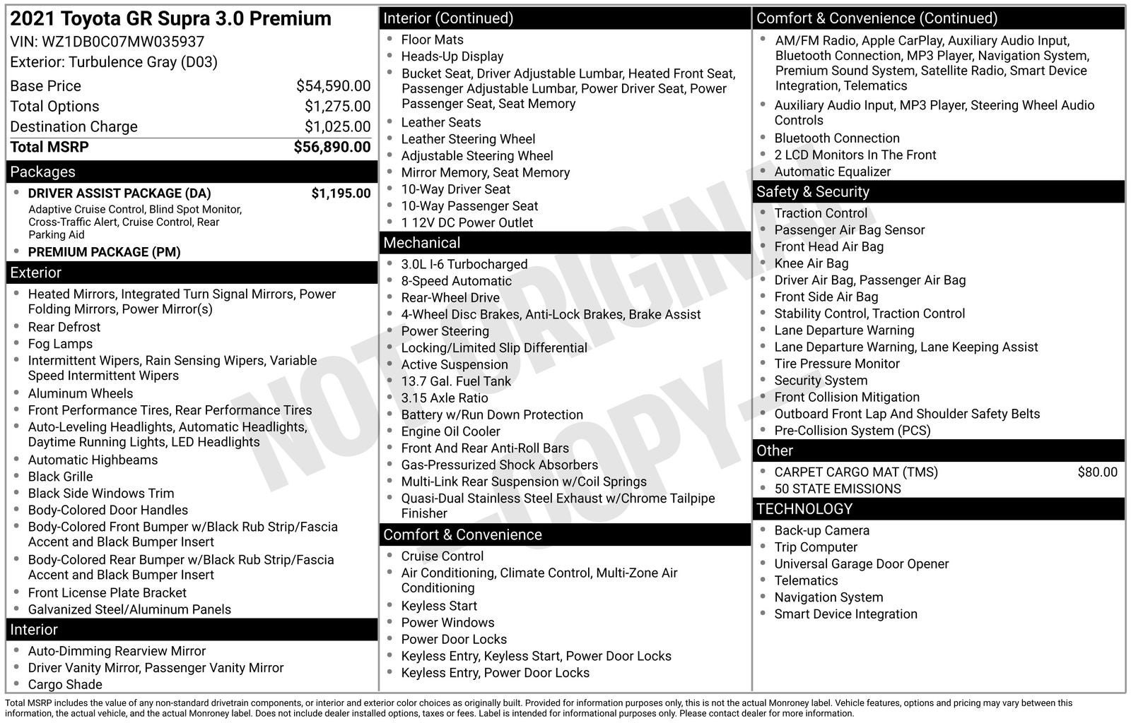 With options like 10 Speakers, 4-Wheel Disc Brakes, ABS brakes, Adaptive suspension, Air Conditioning, Alcantara/Leather Seat Trim, Alloy wheels, AM/FM radio: SiriusXM, Auto High-beam Headlights, Auto-dimming door mirrors, Auto-dimming Rear-View mirror, Automatic temperature control, Brake assist, Bumpers: body-color, Child-Seat-Sensing Airbag, Delay-off headlights, Driver door bin, Driver vanity mirror, Dual front impact airbags, Dual front side impact airbags, Electronic Stability Control, Exterior Parking Camera Rear, Four wheel independent suspension, Front anti-roll bar, Front Bucket Seats, Front Center Armrest, Front dual zone A/C, Front fog lights, Front reading lights, Front Sport Seats, Fully automatic headlights, Garage door transmitter: HomeLink, Heated door mirrors, Illuminated entry, Knee airbag, Leather Shift Knob, Leather steering wheel, Low tire pressure warning, Memory seat, Occupant sensing airbag, Outside temperature display, Overhead airbag, Panic alarm, Passenger door bin, Passenger vanity mirror, Power door mirrors, Power driver seat, Power passenger seat, Power steering, Power windows, Radio data system, Radio: 205-Watt AM/FM Stereo w/10 Speakers, Radio: 500-Watt AM/FM JBL Audio w/12 Speakers, Rain sensing wipers, Rear anti-roll bar, Rear window defroster, Remote keyless entry, Security system, Speed control, Speed-sensing steering, Speed-Sensitive Wipers, Steering wheel mounted audio controls, Tachometer, Telescoping steering wheel, Tilt steering wheel, Traction control, Trip computer, Turn signal indicator mirrors, Variably intermittent wipers, and Wheels: 19 Forged Aluminum w/Painted Accents.