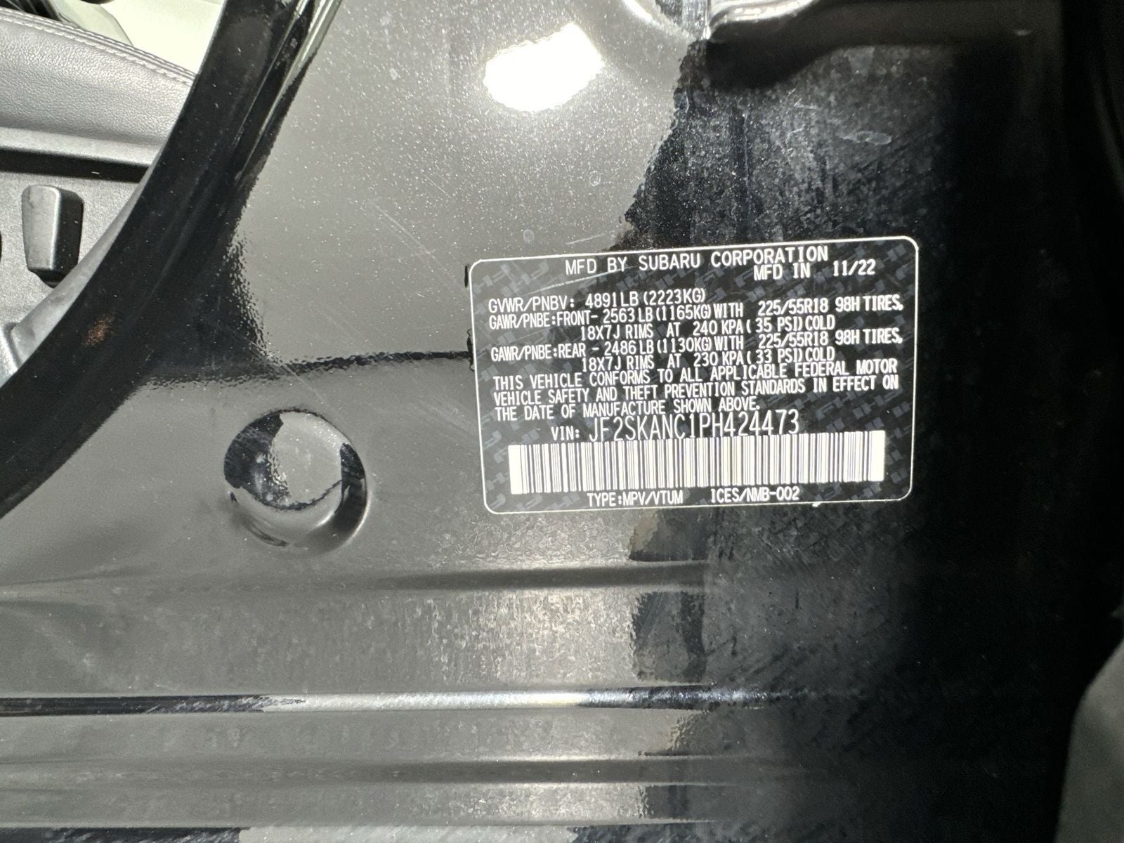 With options like 3.70 Axle Ratio, 4-Wheel Disc Brakes, 6 Speakers, ABS brakes, Air Conditioning, Alloy wheels, AM/FM radio: SiriusXM, Anti-whiplash front head restraints, Auto High-beam Headlights, Automatic temperature control, Brake assist, Bumpers: body-color, CD player, Driver door bin, Driver vanity mirror, Dual front impact airbags, Dual front side impact airbags, Electronic Stability Control, Emergency communication system: STARLINK Safety and Security (Subscription Required), Exterior Parking Camera Rear, Four wheel independent suspension, Front anti-roll bar, Front Bucket Seats, Front Center Armrest, Front dual zone A/C, Front fog lights, Front reading lights, Fully automatic headlights, Heated door mirrors, Heated Front Bucket Seats, Heated front seats, Illuminated entry, Knee airbag, Leather Shift Knob, Low tire pressure warning, Occupant sensing airbag, Outside temperature display, Overhead airbag, Overhead console, Panic alarm, Passenger door bin, Passenger vanity mirror, Perforated Leather-Trimmed Upholstery, Power door mirrors, Power driver seat, Power Liftgate, Power moonroof: Panoramic, Power steering, Power windows, Radio data system, Radio: Subaru Starlink 8.0 Multimedia Plus System, Rear anti-roll bar, Rear seat center armrest, Rear window defroster, Rear window wiper, Remote keyless entry, Roof rack: rails only, Security system, Speed control, Speed-sensing steering, Split folding rear seat, Spoiler, STARLINK/Apple CarPlay/Android Auto, Steering wheel mounted audio controls, Tachometer, Telescoping steering wheel, Tilt steering wheel, Traction control, Trip computer, Turn signal indicator mirrors, Variably intermittent wipers, and Wheels: 18 x 7.0 J Black Machine Finish Alloy.