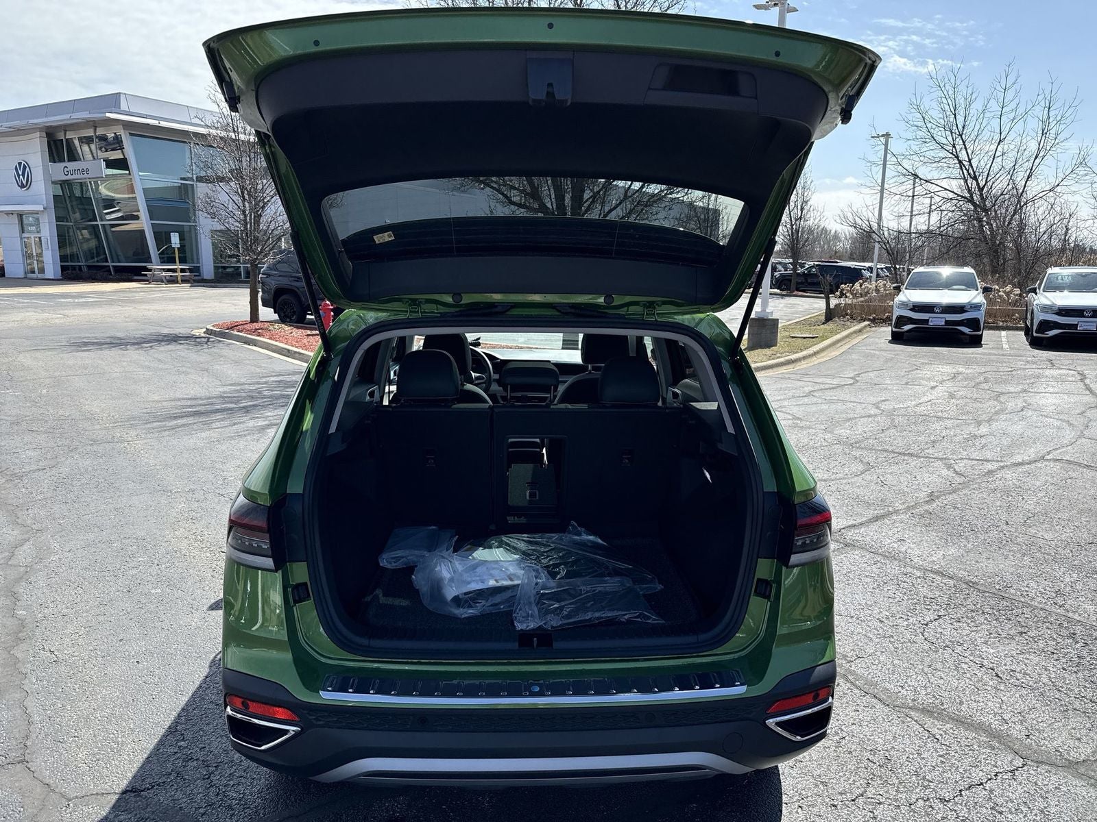 With options like Panoramic Sunroof Package, Taos Adventure Package (SXB) (Black Bumperdillo Protection Plate for Rear Bumper, Retractable Privacy Cover for Cargo Area Blocks, Roof Rack Base Carrier Bars (Set of 2), and Wheel Splash Guards (Set of 4)), Auto-Dimming Rearview Mirror w/HomeLink Connect, Rubber Mats Kit, VW Care, 4-Wheel Disc Brakes, 6 Speakers, ABS brakes, Active Blind Spot Monitor, Air Conditioning, Alloy wheels, AM/FM radio: SiriusXM with 360L, Auto High-beam Headlights, Automatic temperature control, Brake assist, Bumpers: body-color, CloudTex & Cloth Seating Surfaces, Compass, Delay-off headlights, Driver door bin, Driver vanity mirror, Dual front impact airbags, Dual front side impact airbags, Electronic Stability Control, Emergency communication system: VW Car-Net Safe & Secure 5-year, Exterior Parking Camera Rear, Four wheel independent suspension, Front anti-roll bar, Front Bucket Seats, Front Center Armrest, Front dual zone A/C, Front reading lights, Front Strut Rear Multi-Link Suspension, Fully automatic headlights, Heated door mirrors, Heated Front Bucket Seats, Heated front seats, Heated steering wheel, Illuminated entry, Leather Shift Knob, Low tire pressure warning, Occupant sensing airbag, Outside temperature display, Overhead airbag, Overhead console, Panic alarm, Passenger door bin, Passenger vanity mirror, Power door mirrors, Power driver seat, Power steering, Power windows, Radio data system, Radio: MIB3 Composition Media AM/FM/HD, Rain sensing wipers, Rear anti-roll bar, Rear seat center armrest, Rear window defroster, Rear window wiper, Remote keyless entry, Security system, Speed control, Speed-sensing steering, Split folding rear seat, Spoiler, Steering wheel mounted audio controls, Tachometer, Telescoping steering wheel, Tilt steering wheel, Traction control, Trip computer, Variably intermittent wipers, and Wheels: 18 2-Tone Machined Alloy.